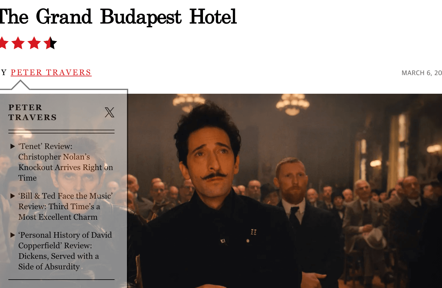 "The Grand Budapest Hotel"은 웨스 앤더슨 감독의 예술적 비전과 탁월한 연출력이 돋보이는 작품입니다. 랄프 파인즈와 토니 레볼로리의 뛰어난 연기, 아름다운 시각적 스타일, 그리고 감동적인 스토리가 어우러져 관객에게 깊은 인상을 남깁니다. 이 영화는 단순한 오락을 넘어, 시대를 초월한 인간의 가치와 우정을 그려낸 명작입니다. 비오는 날, 따뜻한 차 한 잔과 함께 이 영화를 감상해 보세요. 잊지 못할 영화적 경험이 될 것입니다.
